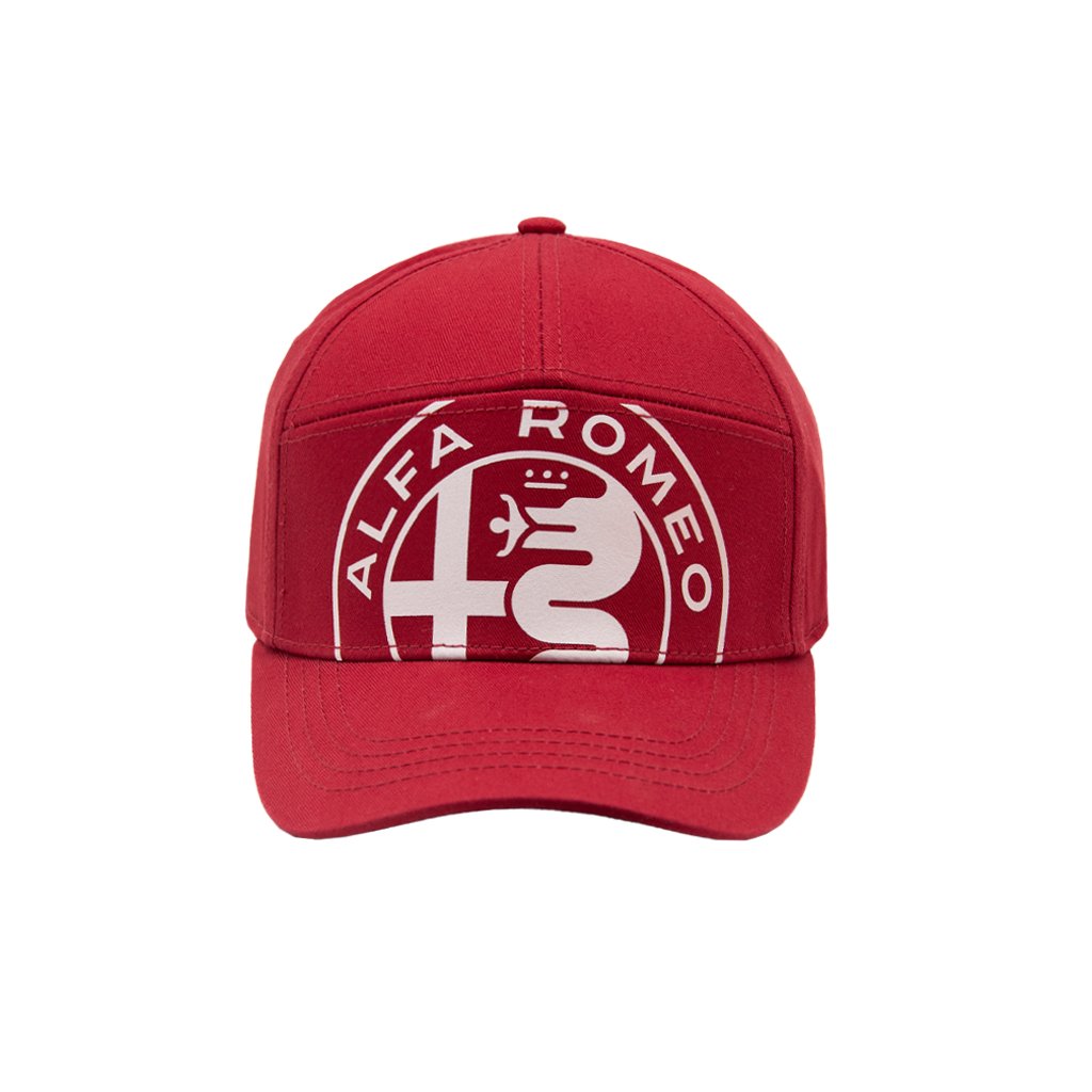 Kšiltovka Alfa Romeo v klasickém provedení s velkým logem Alfa Romeo na přední straně v červeném provedení.