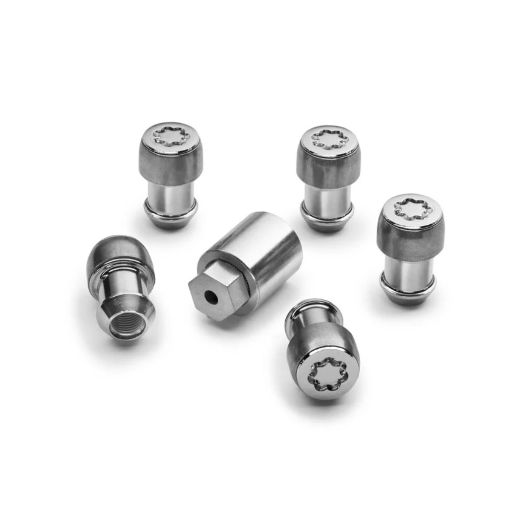 Bezpečnostní matky pomáhají chránit proti krádeži kola a pneumatiky. Souprava zahrnuje pět chromovaných pojistných matic a jeden exkluzivní klíč.
