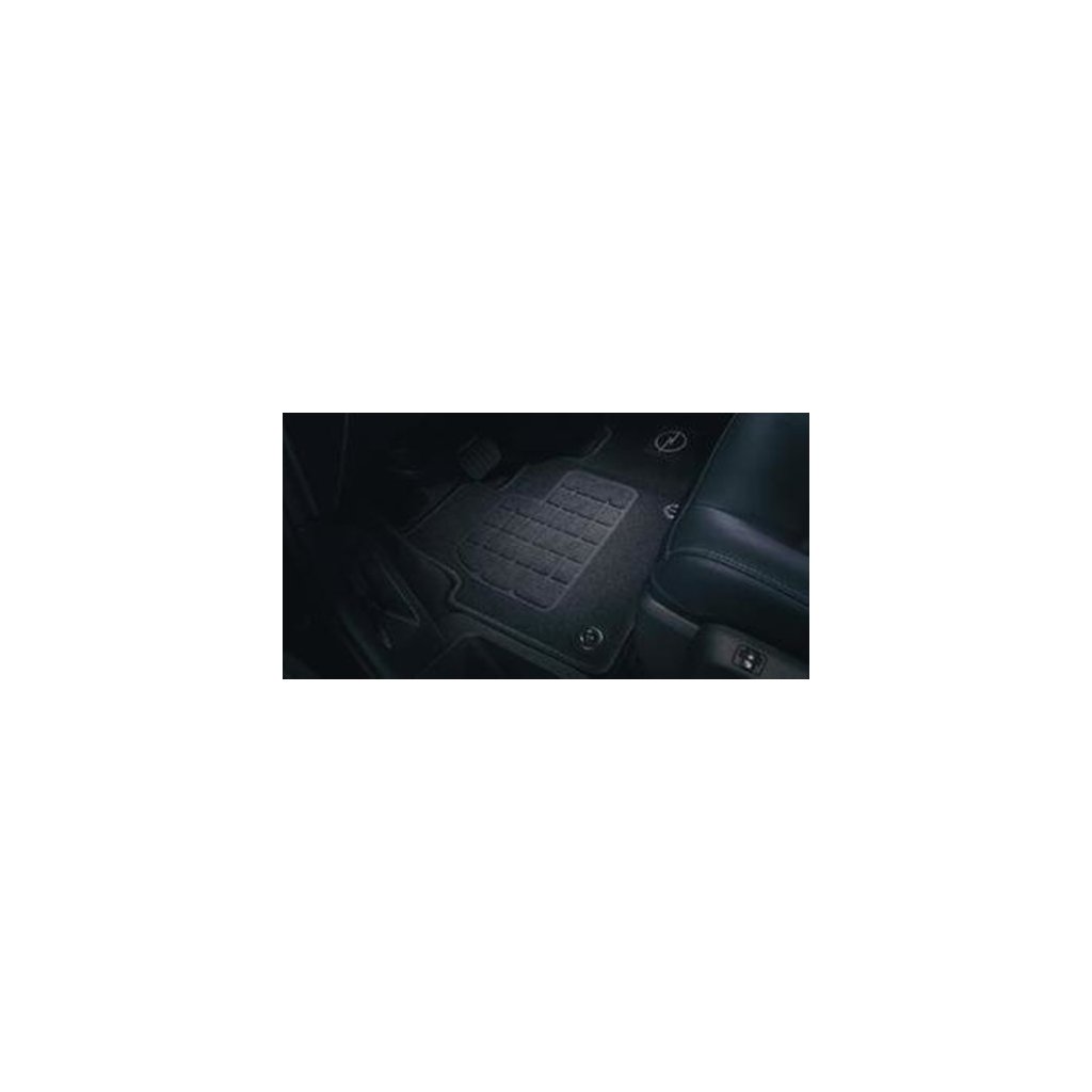 Jednodílný textilní koberec se smyčkovým vlasem černé barvy, určený pro přední část vozidla. Obšité lemy a výztužná nášlapná podložka na straně řidiče. Pro Vivaro C, Zafira Life.